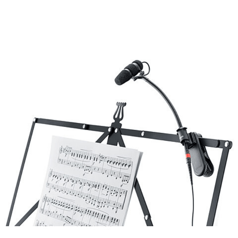 Le mécanisme de montage permet de déplacer facilement le micro entre les instruments d’une seule main.