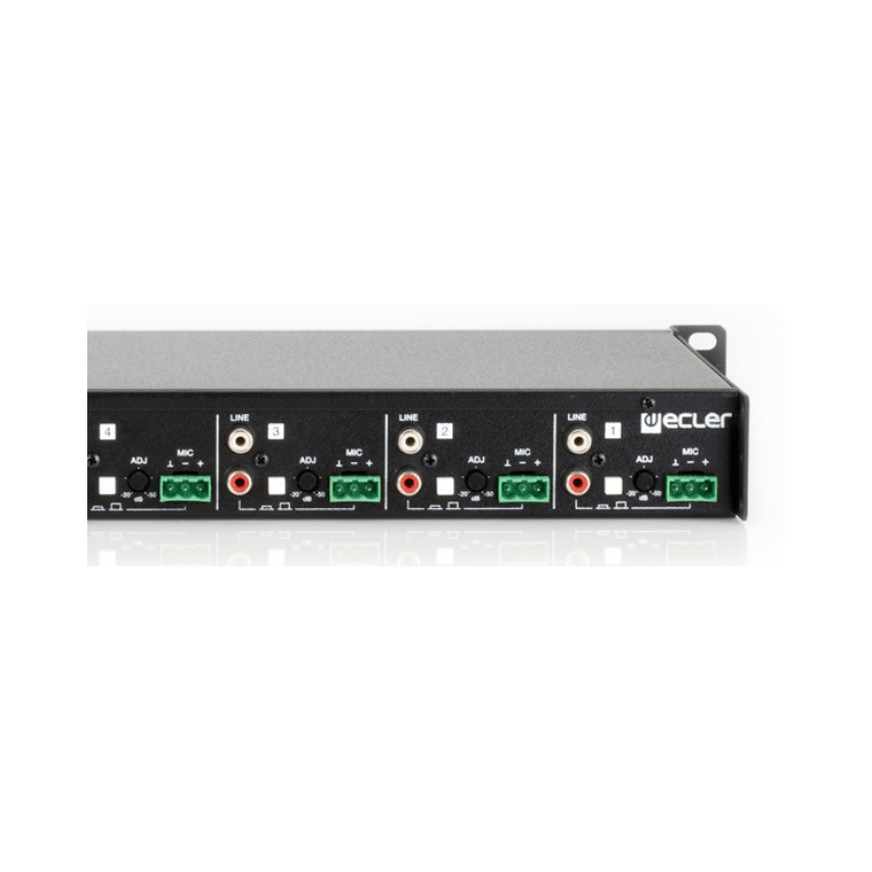 Le Ecler SAM 412T est un mélangeur audio analogique rack 19″ avec 4 entrées micro/ligne, alimentation fantôme +18V et fonction talkover. Idéal pour les installations fixes nécessitant un mix simple et fiable.