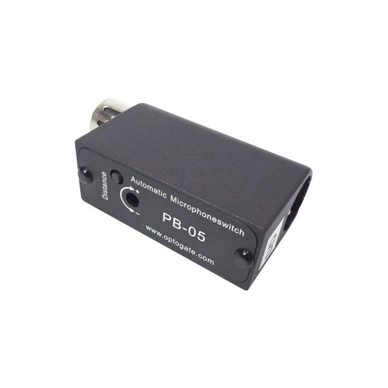 L’Optogate PB-05 est un commutateur automatique de microphone à détection infrarouge conçu pour activer un micro uniquement lorsqu’une personne se trouve devant lui. Placé directement entre le microphone et le câble XLR, il active automatiquement le micro en présence d’un intervenant et le coupe lorsqu’il n’y a plus de signal utile.