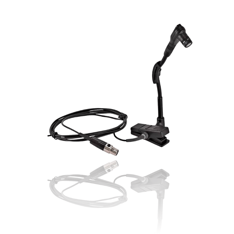Grâce à son col de cygne flexible de 12 cm et à sa pince de fixation intégrée, il se positionne facilement sur le pavillon d’un instrument ou sur le bord d’un fût pour une captation précise et stable.