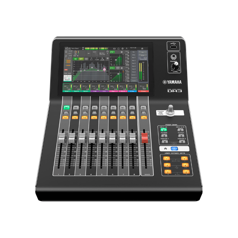 La Yamaha DM3 est une console numérique compacte 8+1 faders avec Dante intégré (16×16), idéale pour le live, le streaming et l’intégration AV.